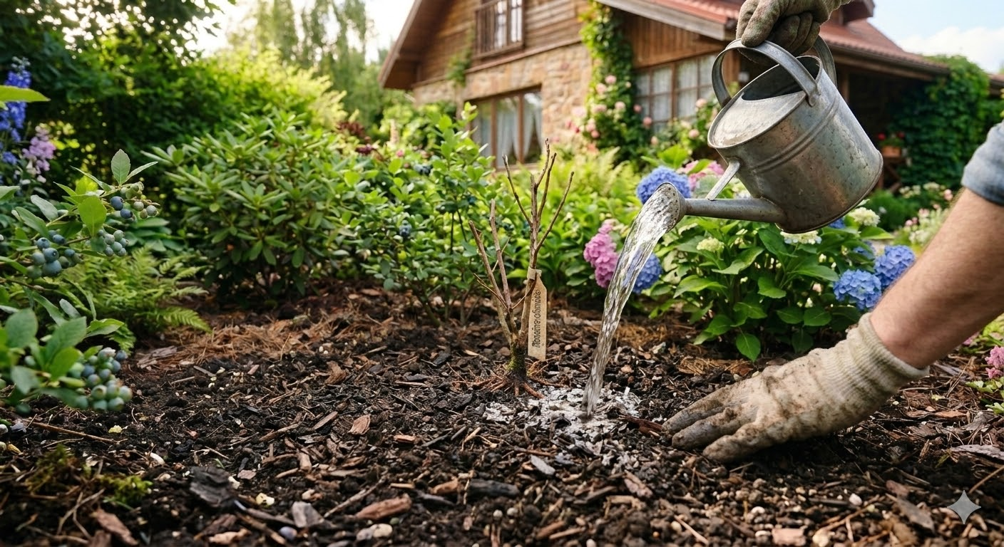 Полейте обильно после посадки и покройте приствольный круг слоем мульчи — это сохранит влагу и защитит корни.